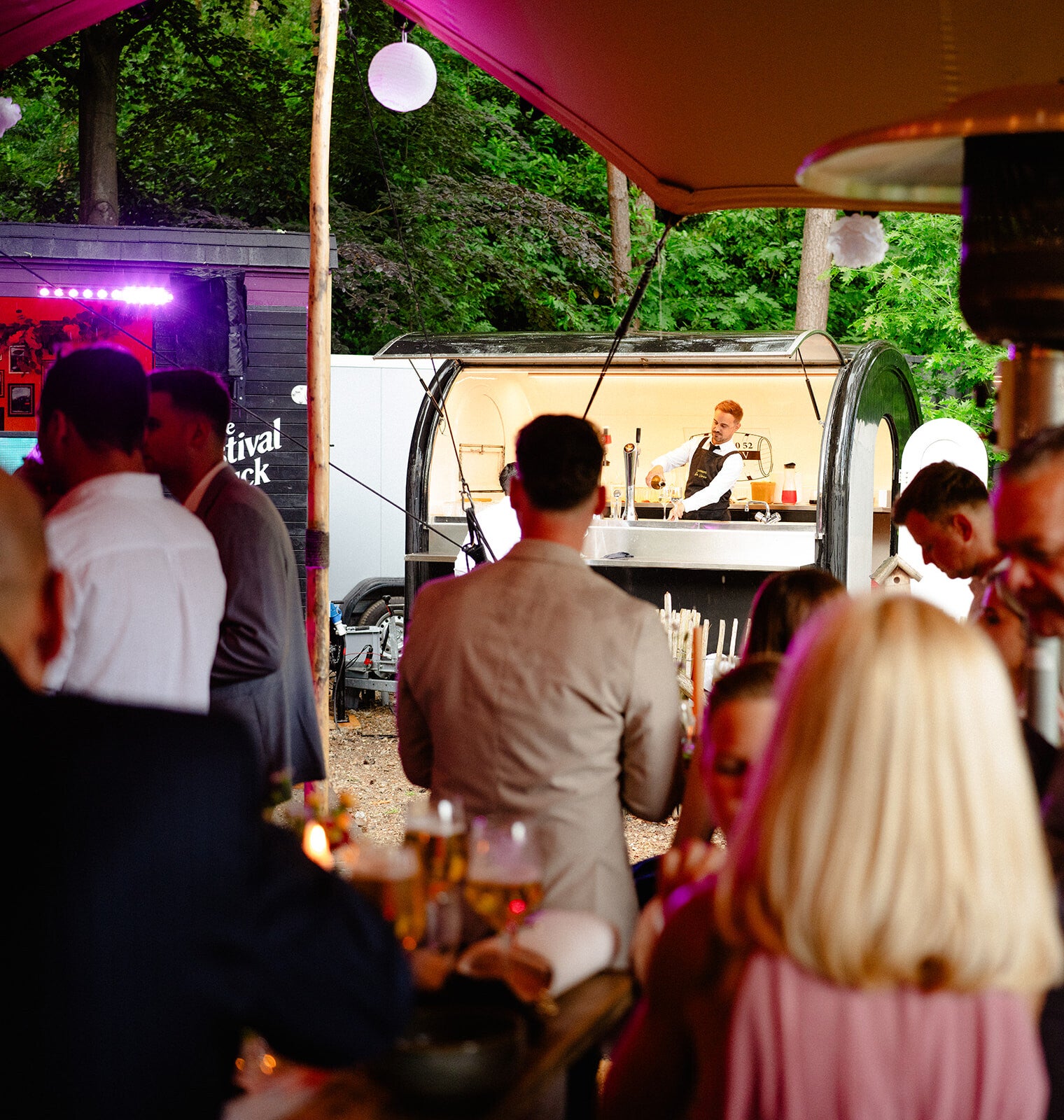 Een jaar lang stonden we regelmatig in contact met Alex. Van praktische details zoals koelinstallaties en tapwagens tot meubilair en leveranciers: alles werd stap voor stap afgestemd. We konden rekenen op eerlijke adviezen en betrouwbare contacten. Zelfs wanneer de realiteit ons onderweg wat onverwachte wendingen bracht, vonden we samen telkens een oplossing. Zonder twijfel: de samenwerking met Alex en Inge was mee bepalend voor het slagen van ons feest.